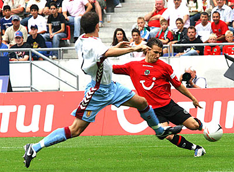 A htvgn vlogatott kzpplysunk, Huszti Szabolcs (kpnkn piros mezben) csapata a Hannover, az Aston Villt fogadta bartsgos mrkzsen. A 35.604 nz eltt lejtszott meccs 0-0-s dntetlennel zrult. Vlogatott kzpplysunk kezdknt, 76 percnyi jtkletsget kapott Peter Neururer vezetedztl. A kt csapat az albbi sszelltsban jtszott a tallkozn: